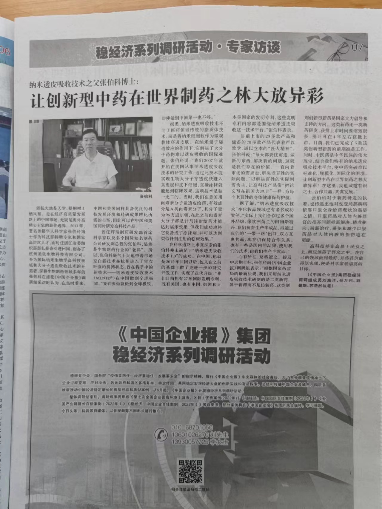原题:纳米透皮吸收技术之父张伯科博士:让创新型中药在世界制药之林大放异彩