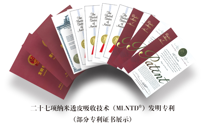 而这样极难获得的发明专利证书,张伯科博士及其研发团队就手握27项,其花费的时间成本及难度可想而知。这足以证明,纳米透皮吸收技术(MLNTD®)是一项“高价值”、“高尖端”、“高前瞻性”的“三高”技术!