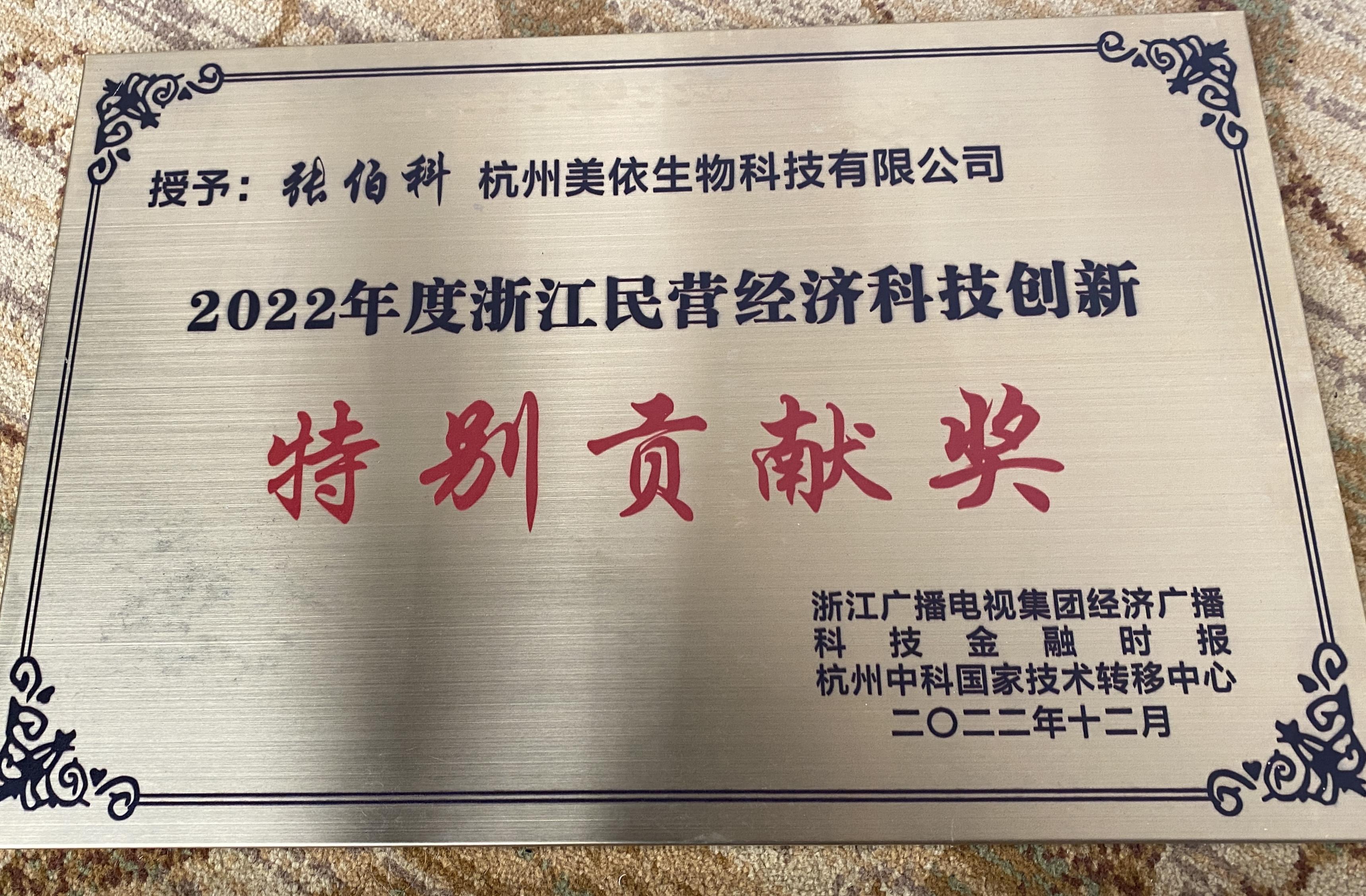 送人玫瑰手留香,博士为民好榜样。2022129日,浙江经济广播宣布本次活动圆满结束,并公布了最终结果。通过几轮的网络点赞和专业的专家评委打分,最终评选出科技创新特别贡献奖(10人)、科技创新新引擎人物(10人)、科技创新新锐企业(16家)。杭州美依公司创始人——张伯科博士在本次活动中有幸被评为“2022浙江民营经济科技创新特别贡献人物”,本次荣誉的获得,也是对张伯科博士十在科技创新领域成就的肯定和嘉奖。