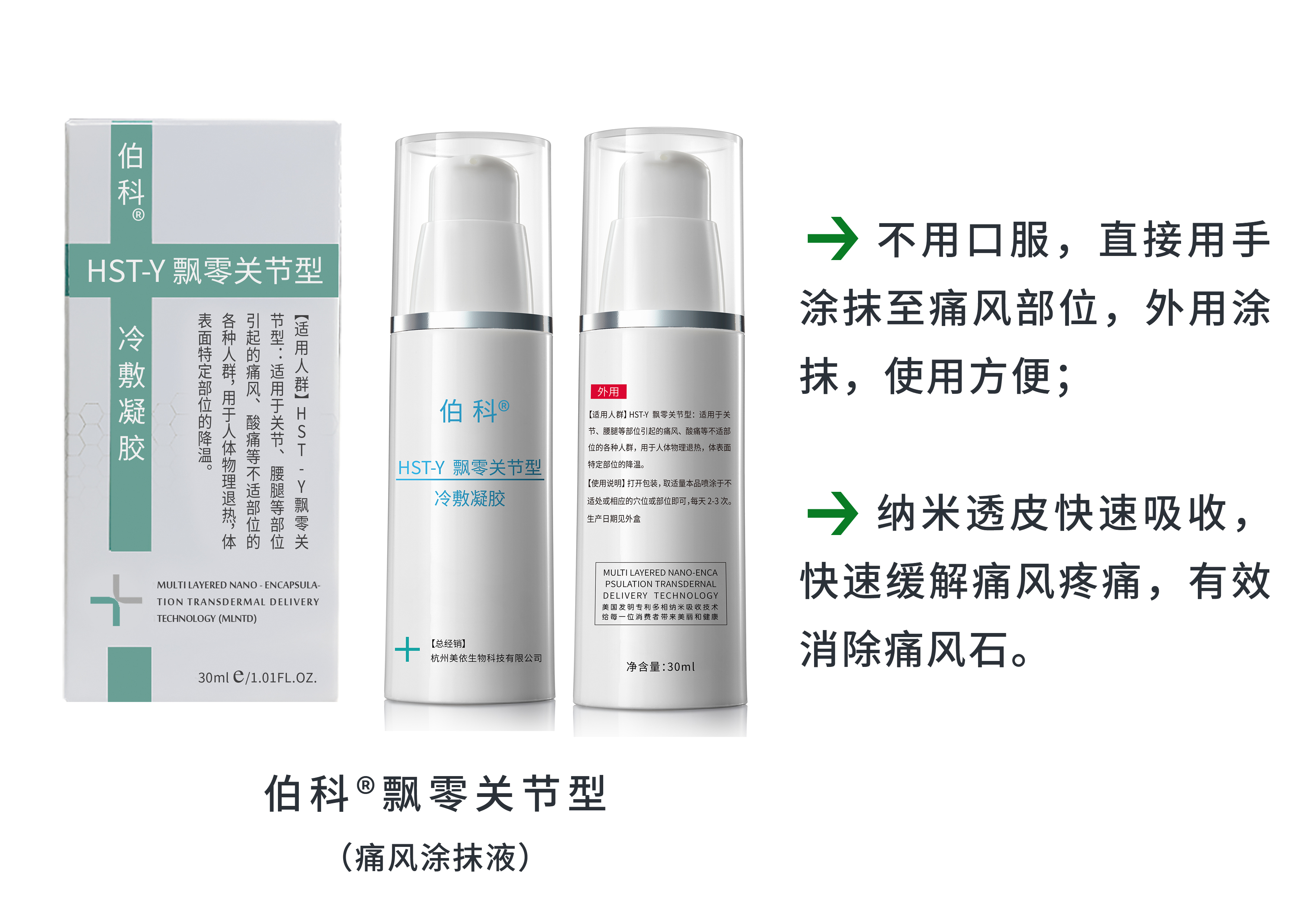 直接避免口服给药的途径,对胃、肝脏、肾脏无任何损害,做到高效、安全地解决痛风问题。