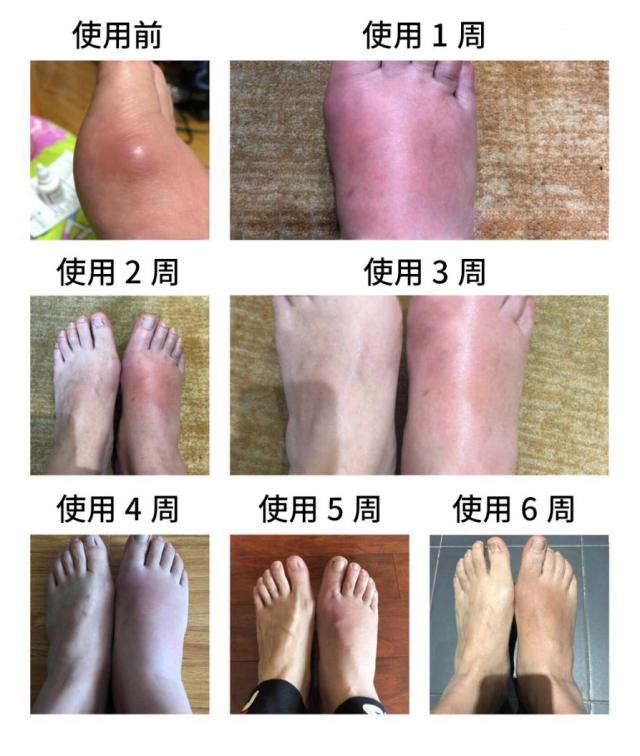 使用前痛风石直径3.7cm,使用6周后痛风石完全消除。