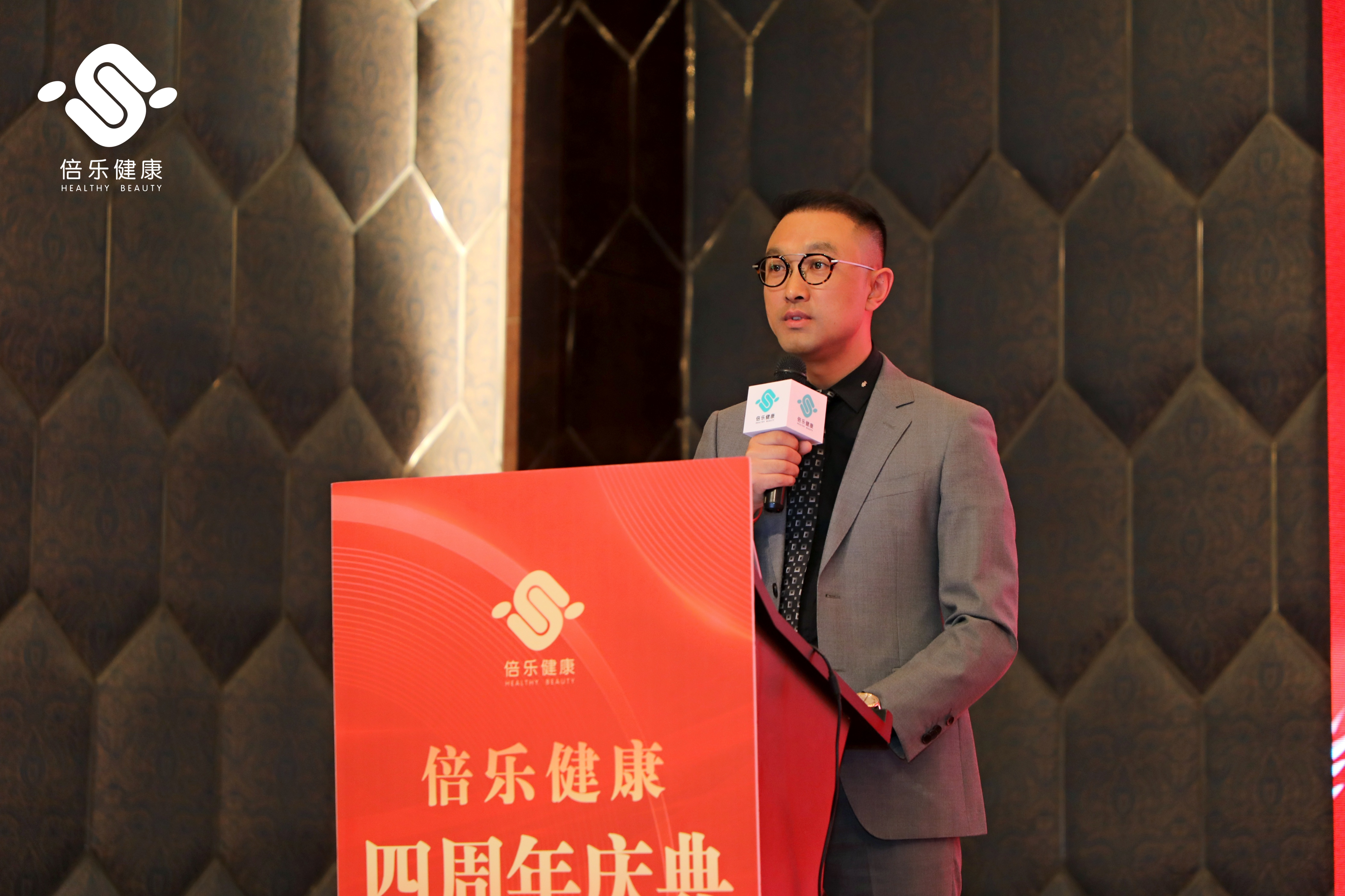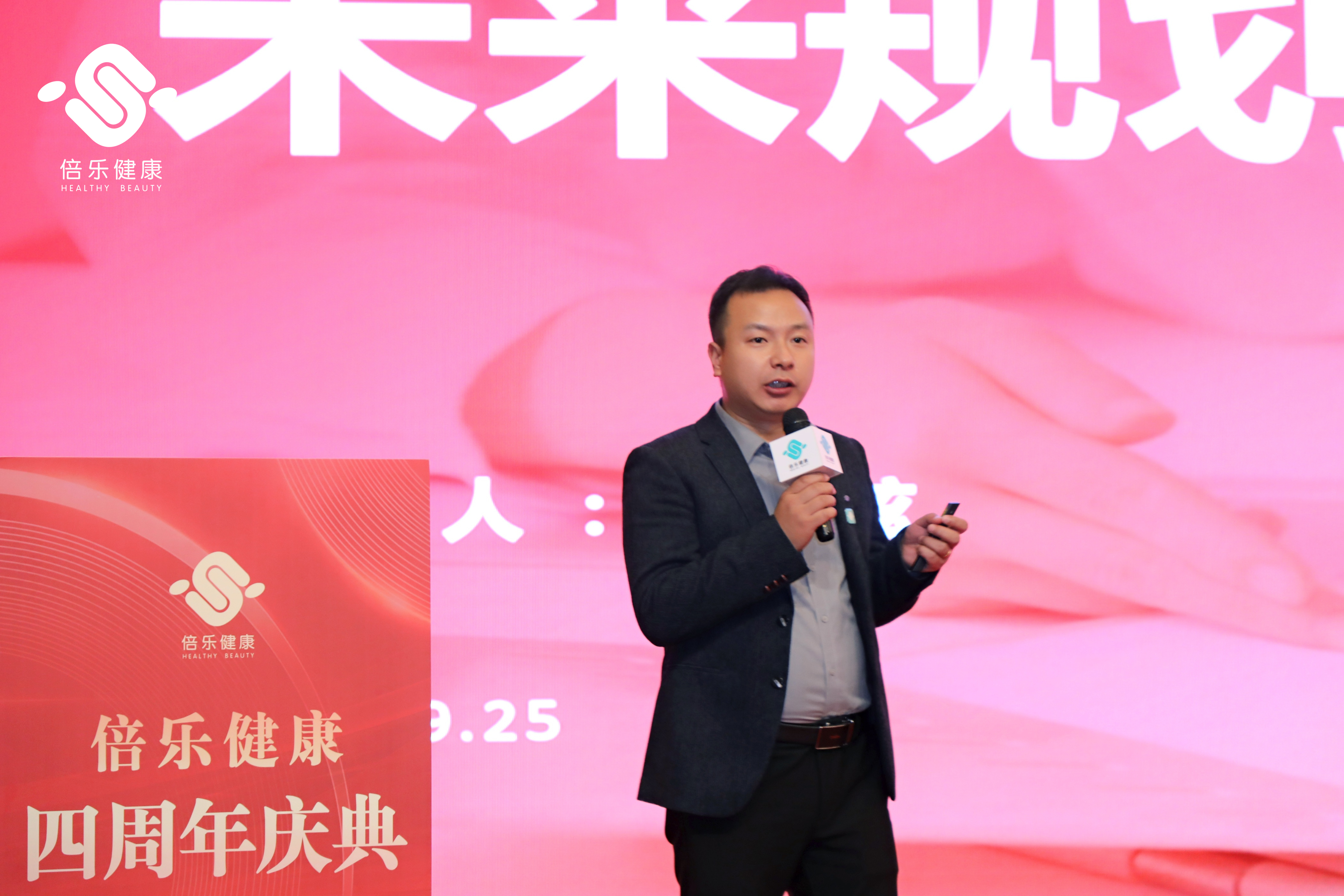 25日下午,“倍乐健康·四周年庆典活动”正式开始,西安海思比特医疗科技有限公司董事长-李玉朝上台致辞,拉开了本场活动的序幕。