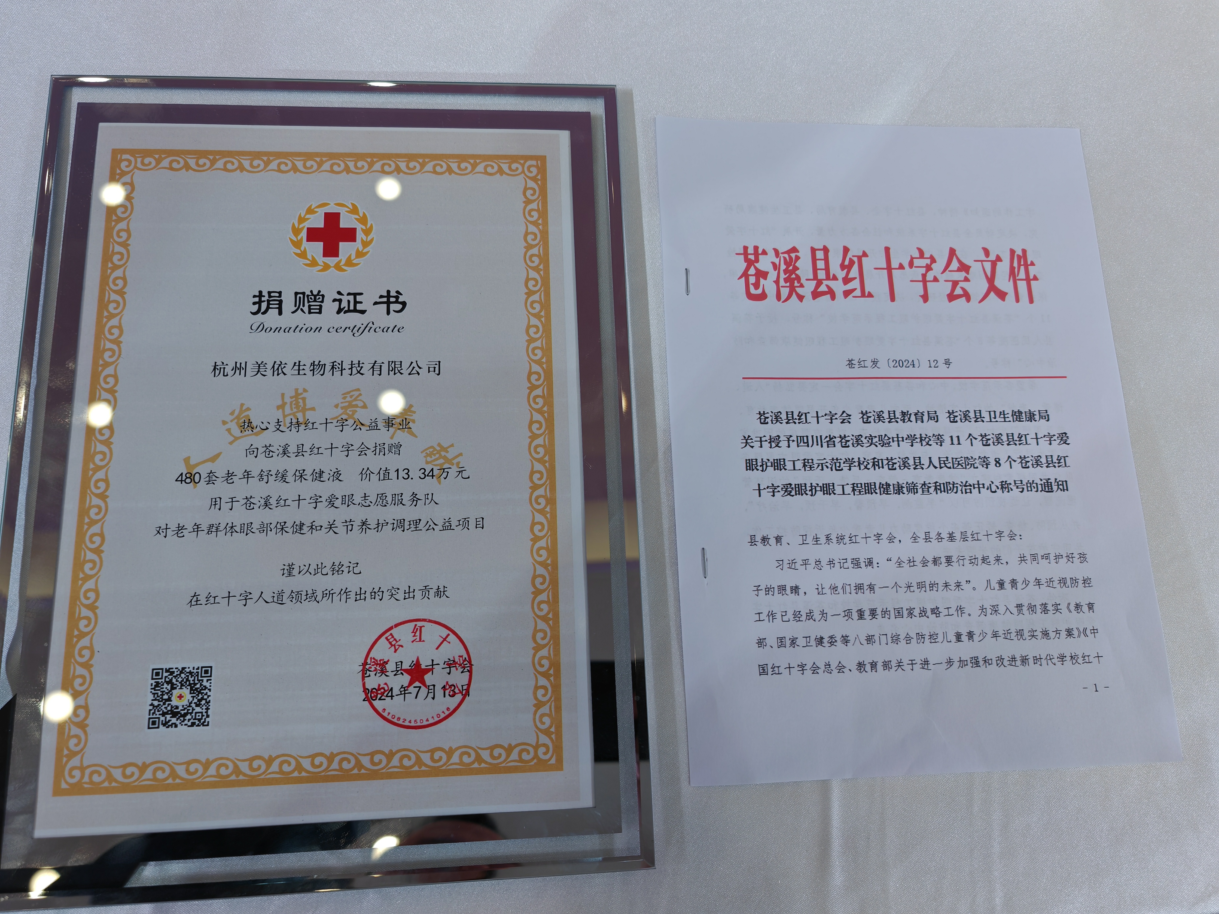 同时,也希望有更多的有志之士加入到我们的健康行列中,与我们一同守护光明,在这场眼健康与光明未来的征途中,杭州美依生物科技有限公司正以实际行动践行着“人道、博爱、奉献”的红十字精神,传递大爱,不懈奋斗,共绘视界新篇章!