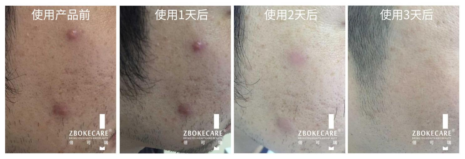 使用后状态:使用3天后,痘痘红肿消退,不留痘印痘痕,完美修复