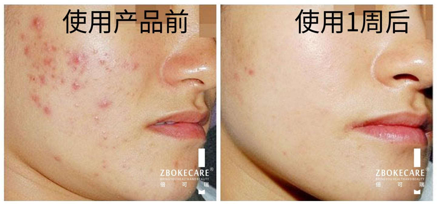 使用后状态:使用1周后,痘痘消退,痘印痕迹消除,皮肤变光滑、细腻,痘痘不再反复生长