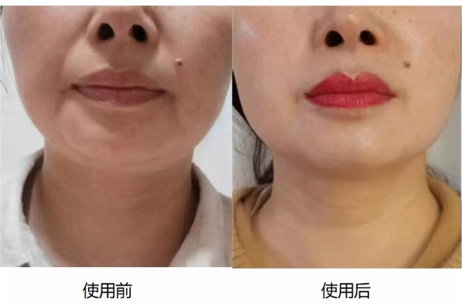 使用后状态:15天使用了产品2瓶,法令纹淡化,下颌线清晰、皮肤变紧致,更显年轻。