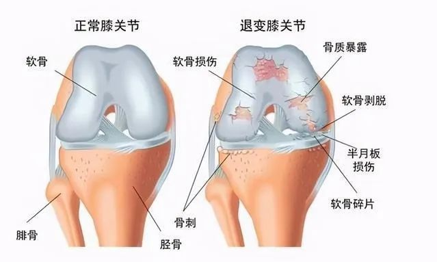 正常膝关节与受损膝关节对比图