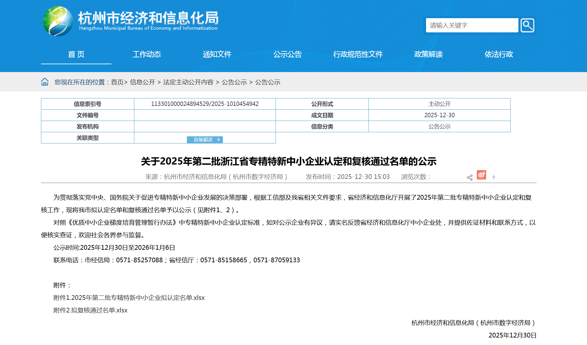 近日,杭州市经济和信息化局正式公布了最新一批浙江省专精特新中小企业名单。