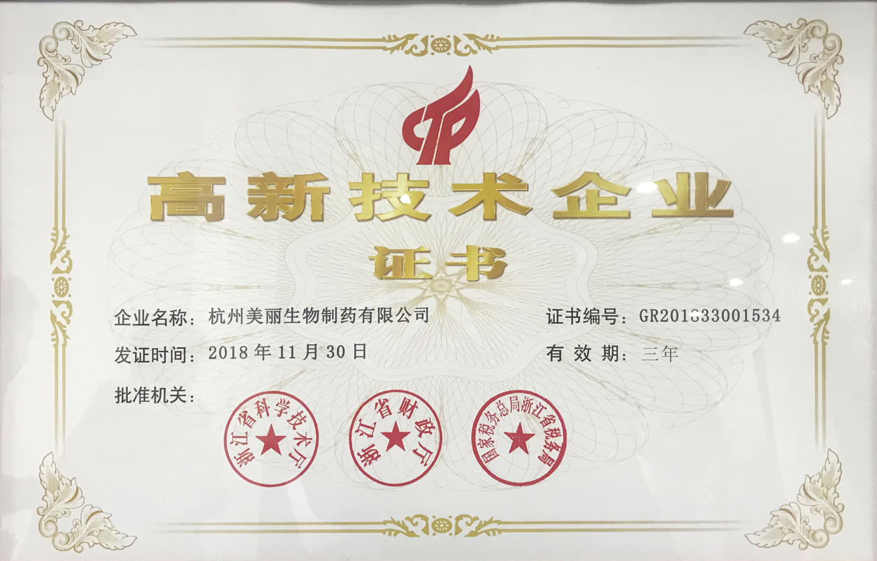 【杭州美依生物科技有限公司&杭州芙源生物制药有限公司】均荣获“国家级高新技术企业”证书!