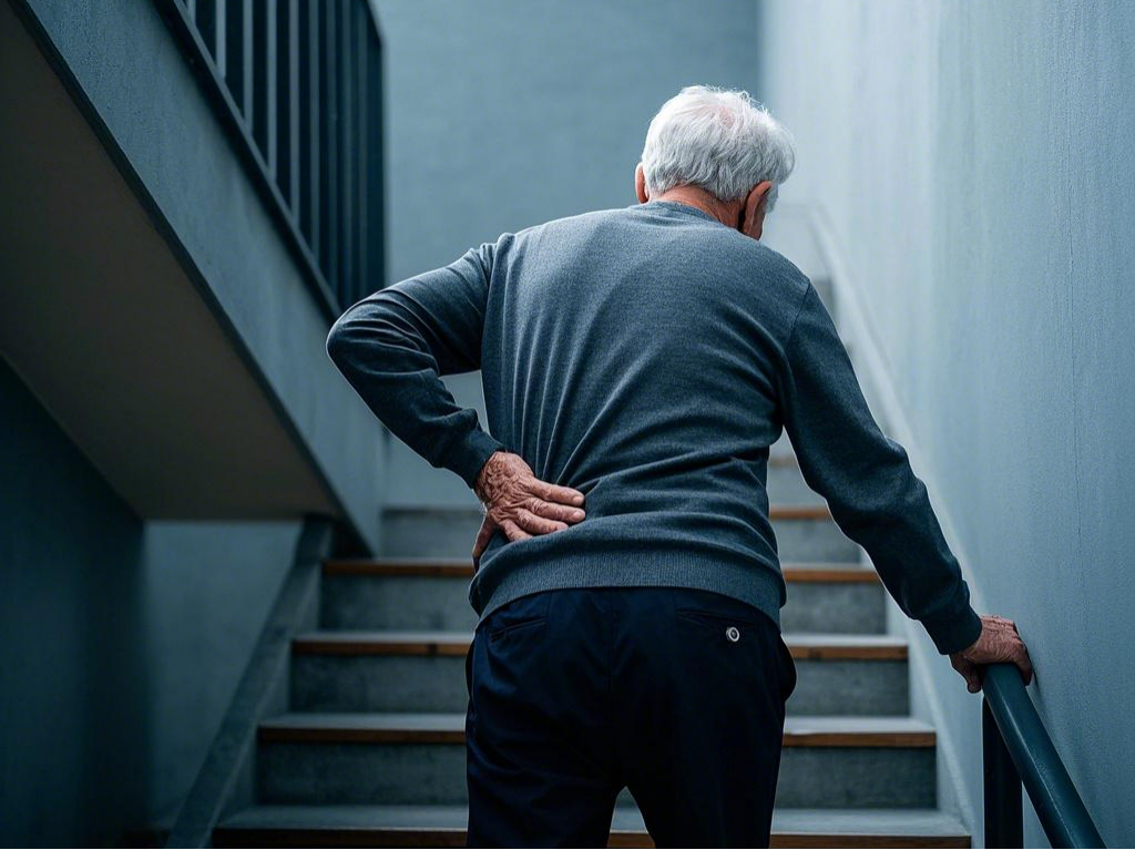老人上楼时腰痛