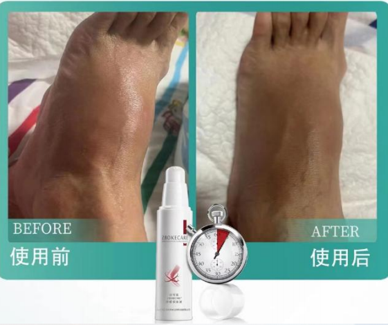 使用后状态:涂抹使用舒缓保健液18小时后,左脚的肿胀消退了许多,剧烈的疼痛感消失。