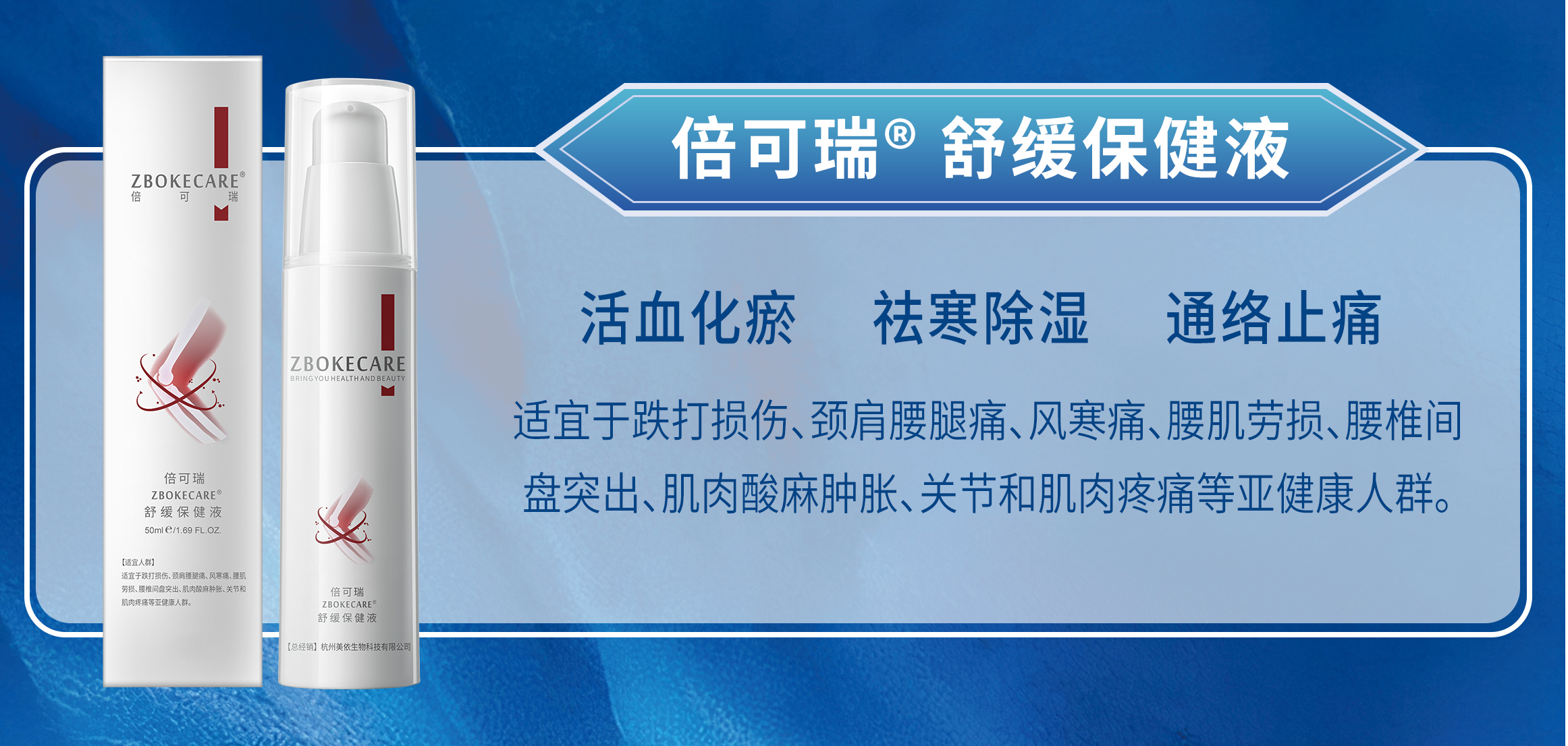 礼盒中包含的倍可瑞®舒缓保健液,有效成分分子能够快速到达疼痛部位,针对颈肩腰腿痛、风寒湿痹,一抹缓解酸胀,有效缓解关节不适,从细胞层面精准修复骨关节问题,规避了口服药物带来的胃、肠、肝、肾的副作用。
